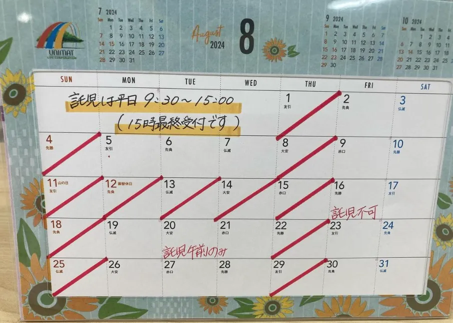 8月の診療日のお知らせ