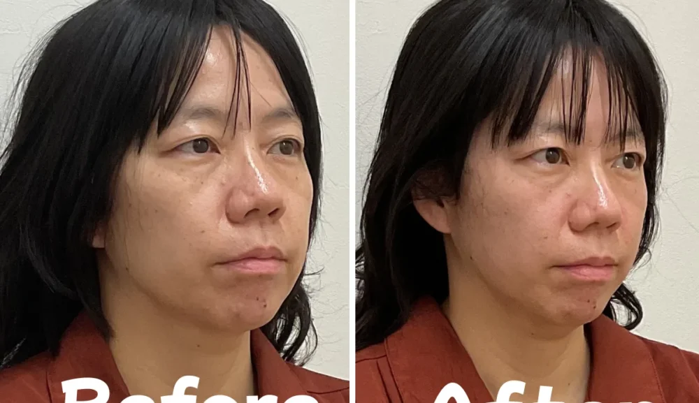 たった1回の施術で、フェイスラインの引き締まり・肌のハリ・透明感がアップしているのがわかります。
